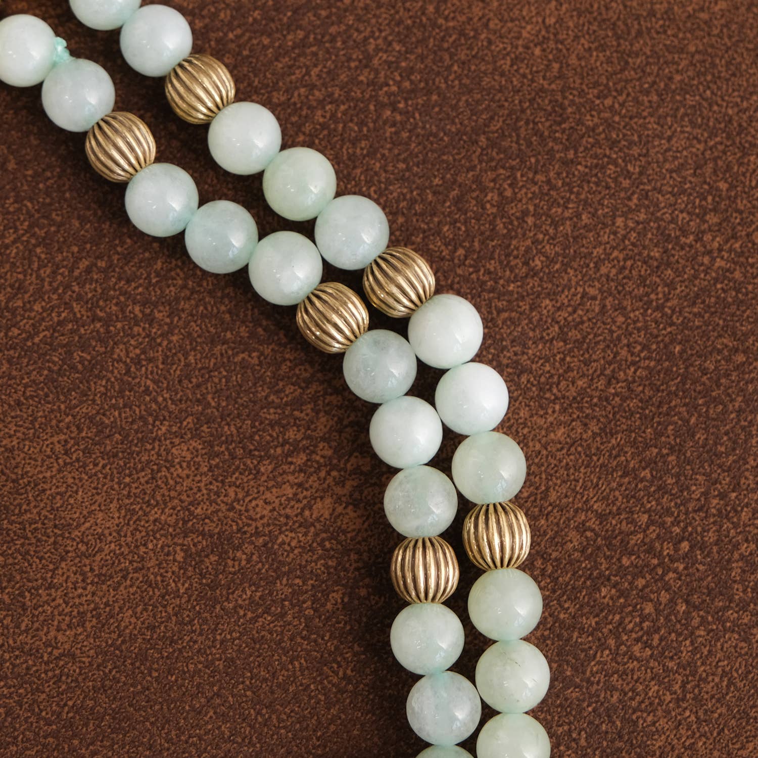 Add a touch of luxury to your collection with this stunning vintage-inspired necklace. Crafted with a beautiful blend of smooth jade-like stones, golden accents, and sparkling crystal embellishments, this statement piece exudes elegance. The intricate design features delicate flower motifs and a striking green gemstone centerpiece, making it perfect for formal events or special occasions. Adjustable length for a comfortable fit, and ideal for those who love timeless, refined jewelry with a touch of glamour.